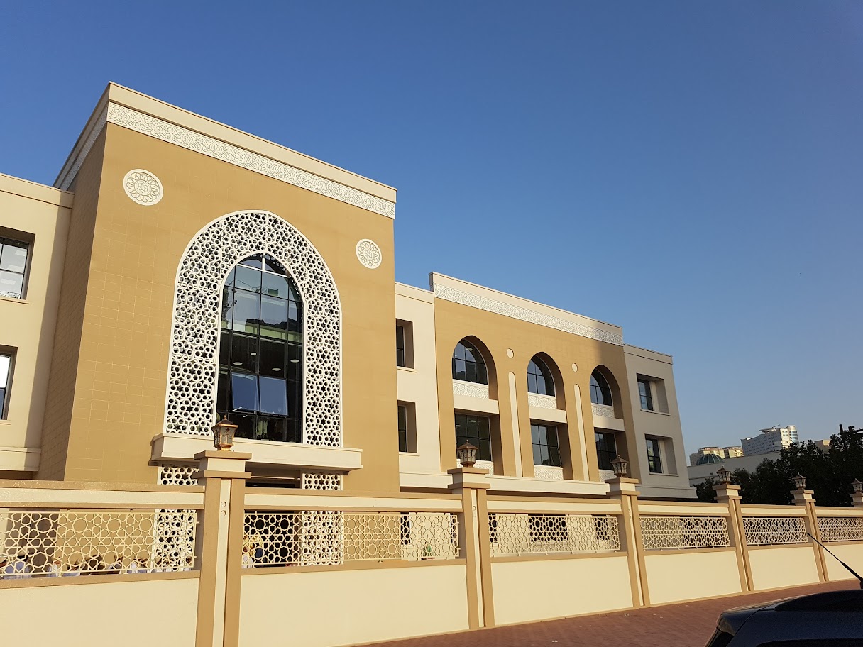 Two campuses approximately 100 metres apart in Al Nahda 2. Primary Campus (established 2004) with 250-seat auditorium and three multipurpose halls. Modern 3-storey Secondary Campus with 32,000 sq ft astroturf sports field, covered play area, indoor badminton court, basketball, volleyball, and tennis courts. Four fully equipped science laboratories (Biology, Chemistry, Physics) plus a primary science lab. Spacious library with e-learning and myON online subscription.